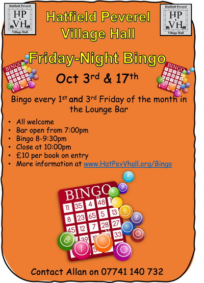 Every 1st and 3rd Friday of the month in the Lounge bar. All welcome, just pay for your Bingo book(s) on the door.
