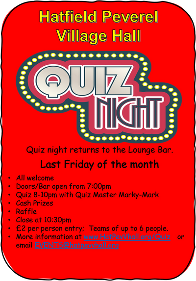 We are proposing to run a quiz night, once a month on the last Friday of each month. We'll be in the Lounge with full bar service. Marky-Mark will be the quiz-master. £2 per person (cash please), with teams of up to 6 people. We'll have a max capacity of 50 people (all seated). Cash prizes, plus a raffle.